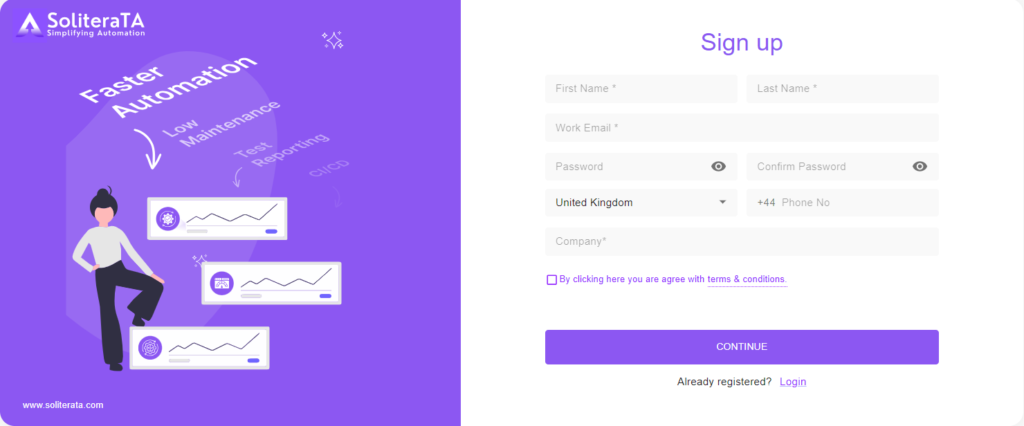 - Copy the licence key (Available on website and email), paste it on the soliteraTA tool, then click on the continue button and start using soliteraTA for automation.